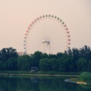 龙潭湖畔摩天轮与中国尊相映