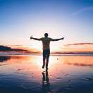 夕阳下的灯塔守望大海