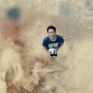 红桥之下 人展双臂迎雾景