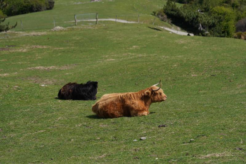 两只牛在草地上休息