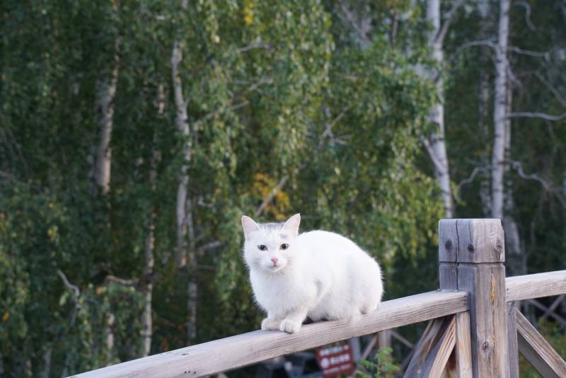 白猫在栏杆上