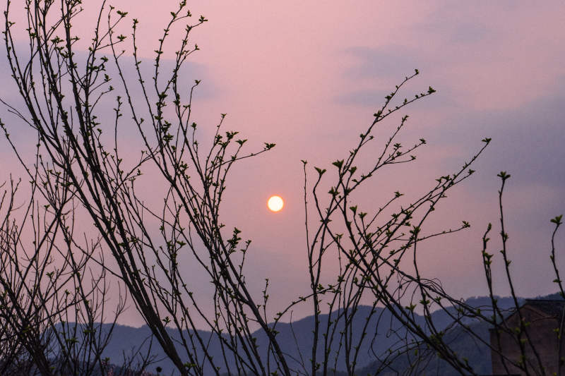 夕阳下的树枝剪影