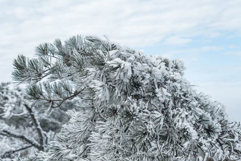 雪后松树的美丽景象