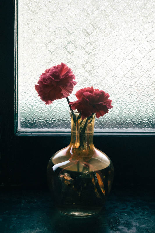 窗边的花瓶与花朵