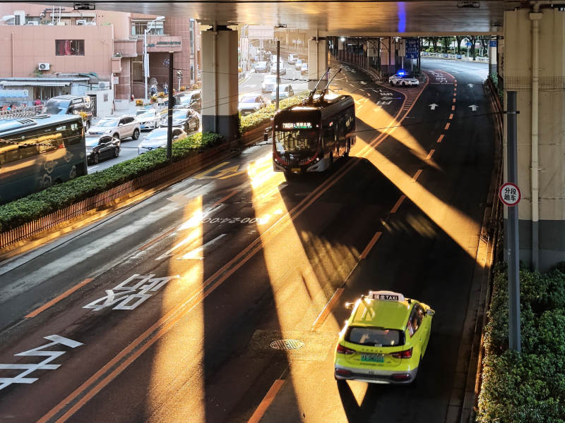 城市光影下的交通