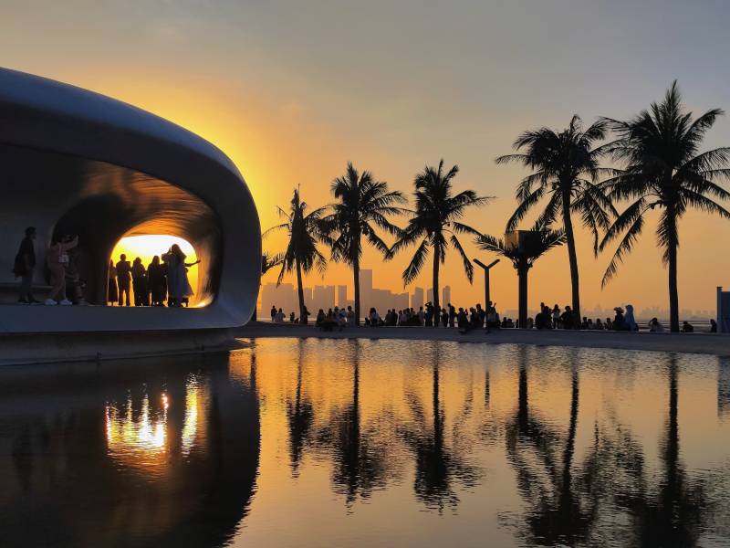 夕阳下的海滨剪影