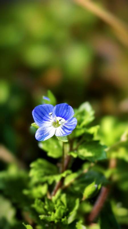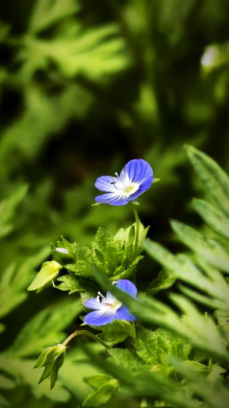 蓝色小花与绿叶