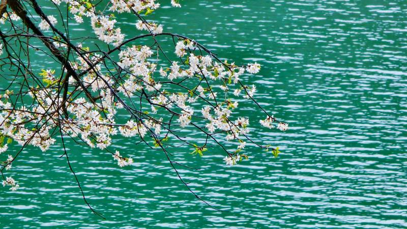 湖畔樱花盛开