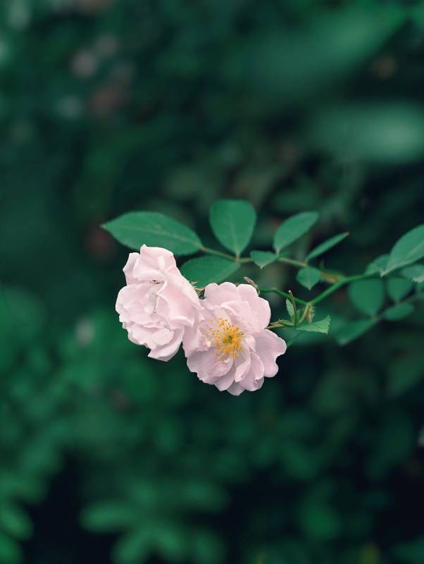 粉色花朵与绿叶