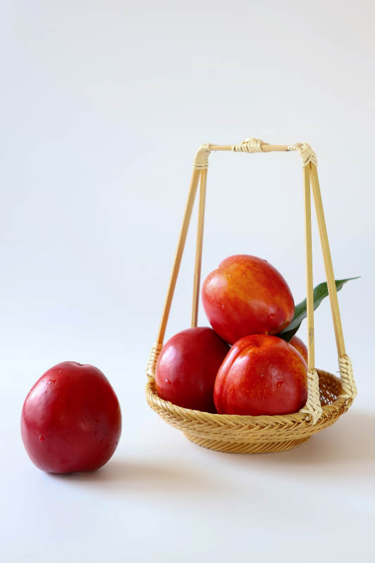 红油桃与竹篮