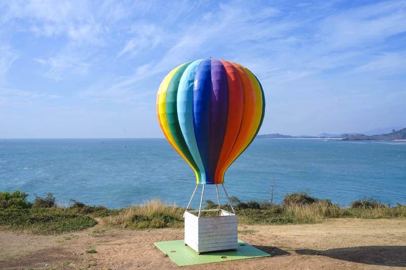 彩虹热气球海边风景