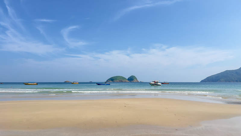 海滩上的船只与蓝天