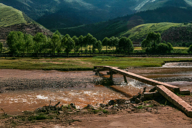 山间溪流与木桥