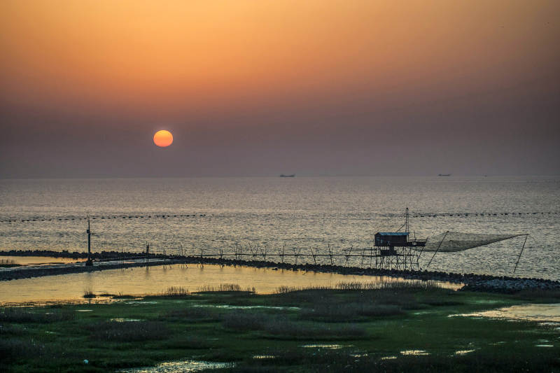 南汇嘴东海日出时宁静的海滩