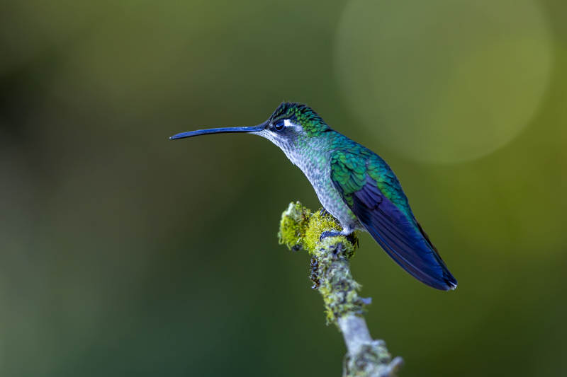 蜂鸟栖息在苔藓枝头