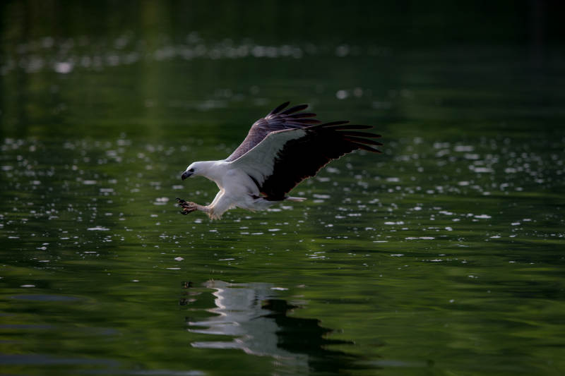 白腹海鹰翱翔水面