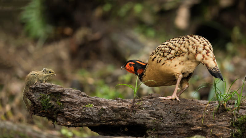 松鼠与黄腹角雉的森林奇遇