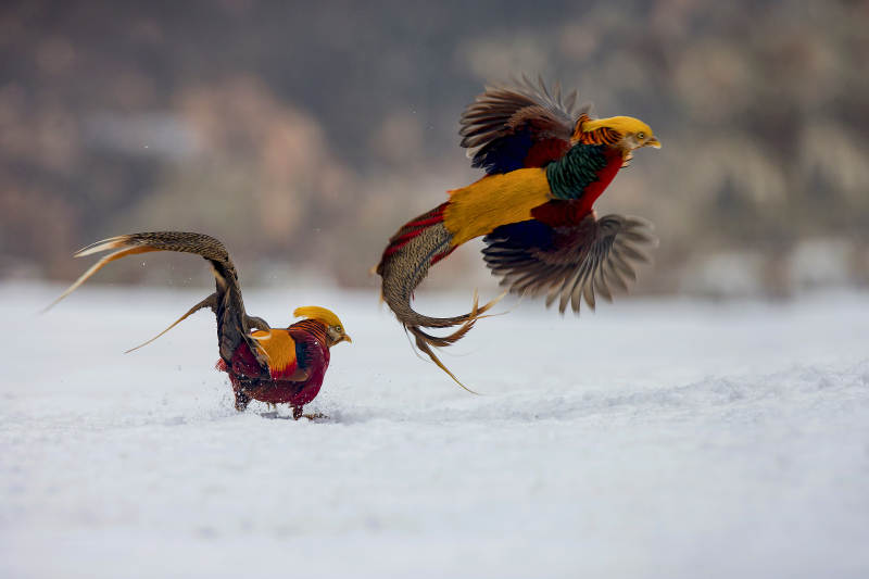 雪地金鸡争艳