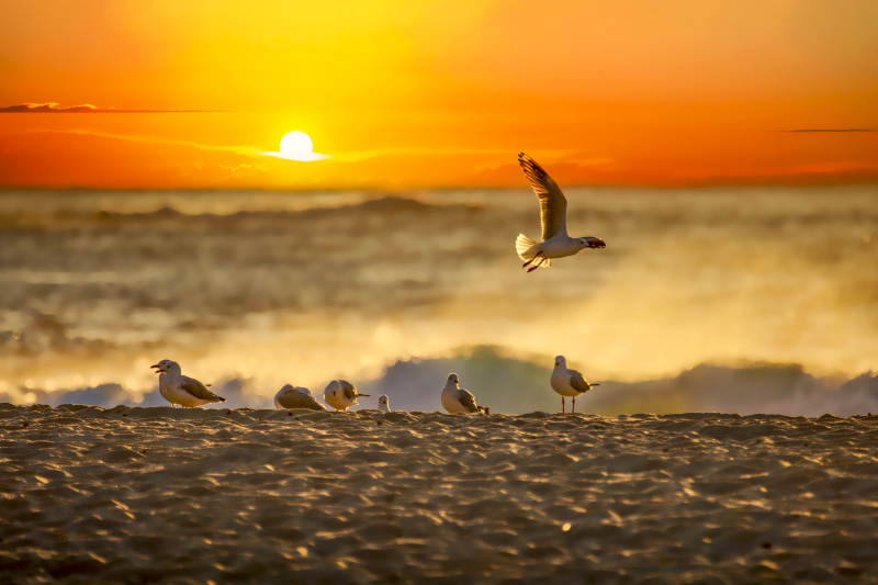 海鸥与日出