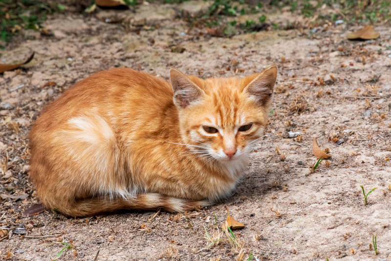 橙色猫咪在户外休息