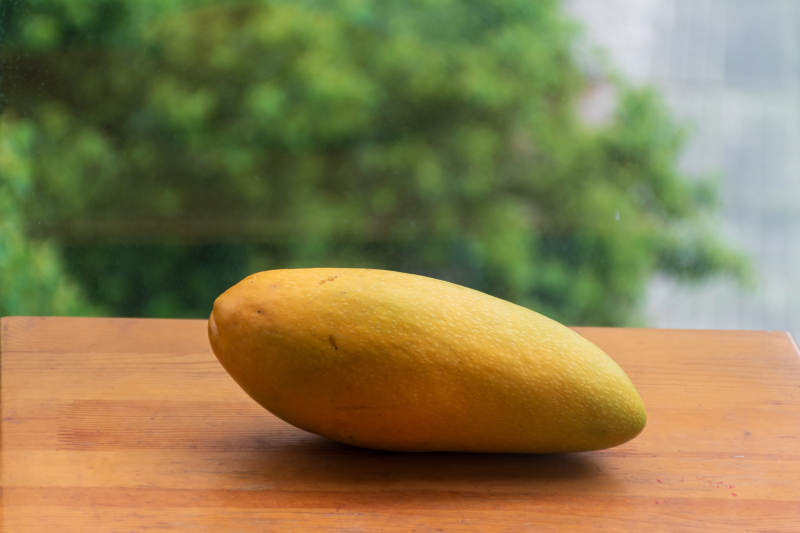 木桌上熟透的芒果