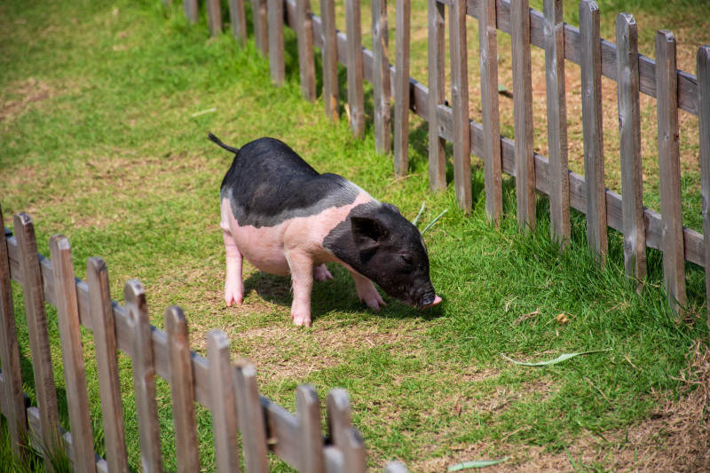 小猪在围栏里吃草