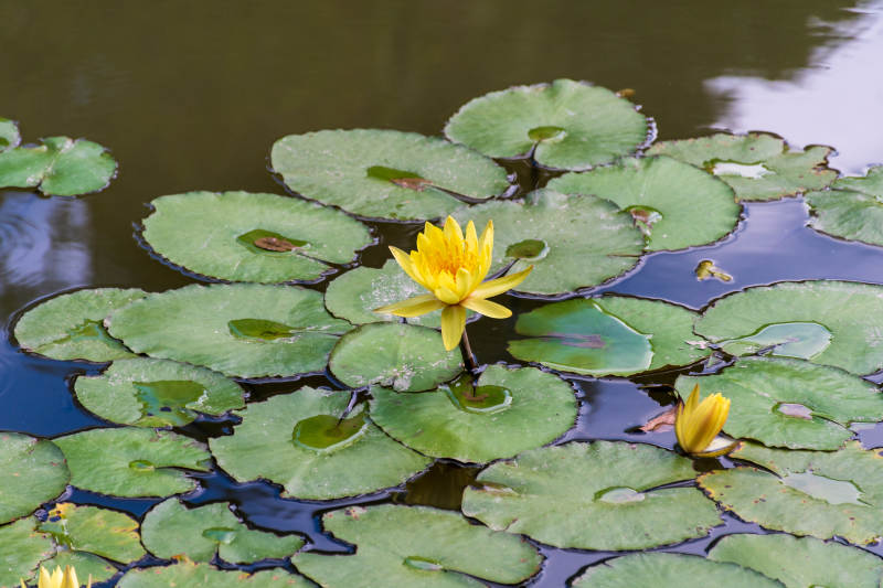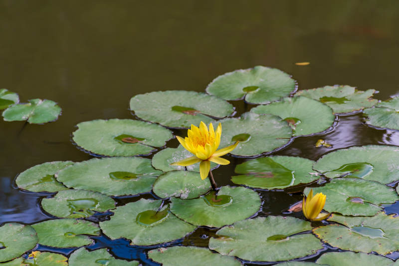 池塘中的黄色睡莲