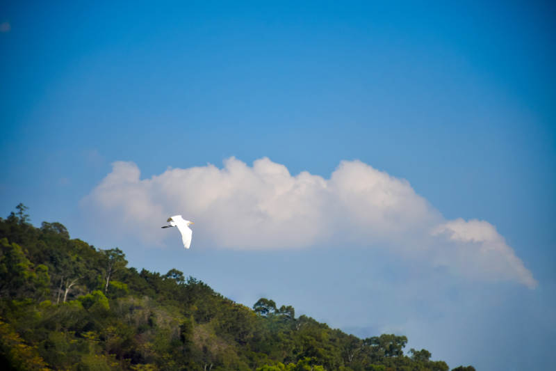 白鹭飞翔 山林云影