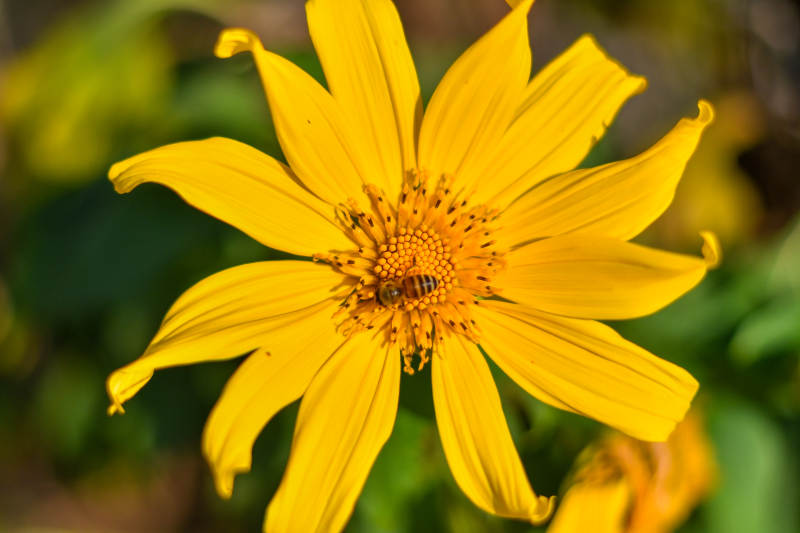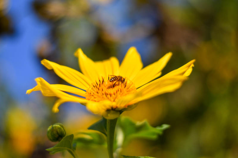蜜蜂采蜜在黄花上