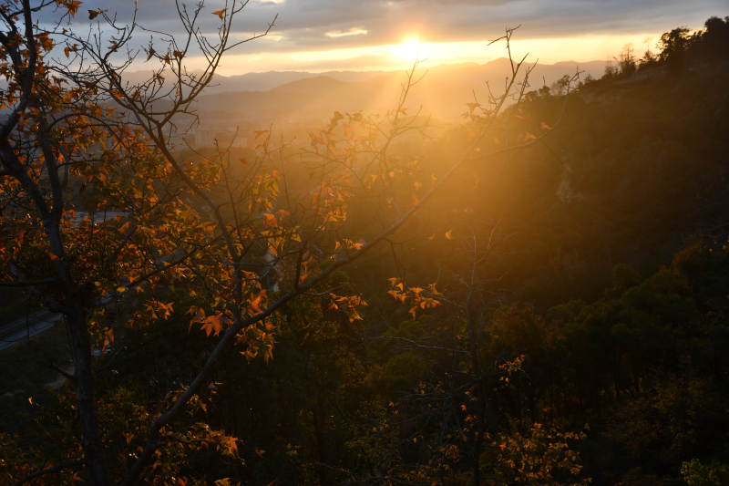 秋日黄昏山间剪影