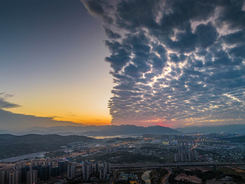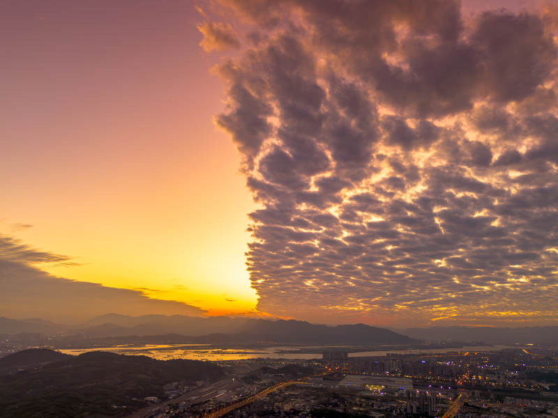 夕阳下的城市与云海