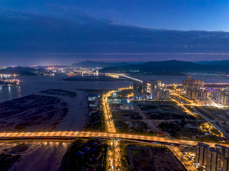 夜幕下的福州城市灯火通明