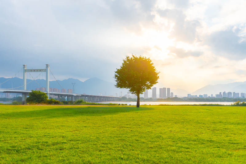 孤树映日 桥城相望