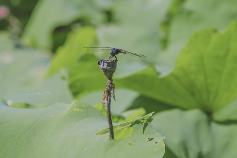 荷叶上的蜻蜓静憩