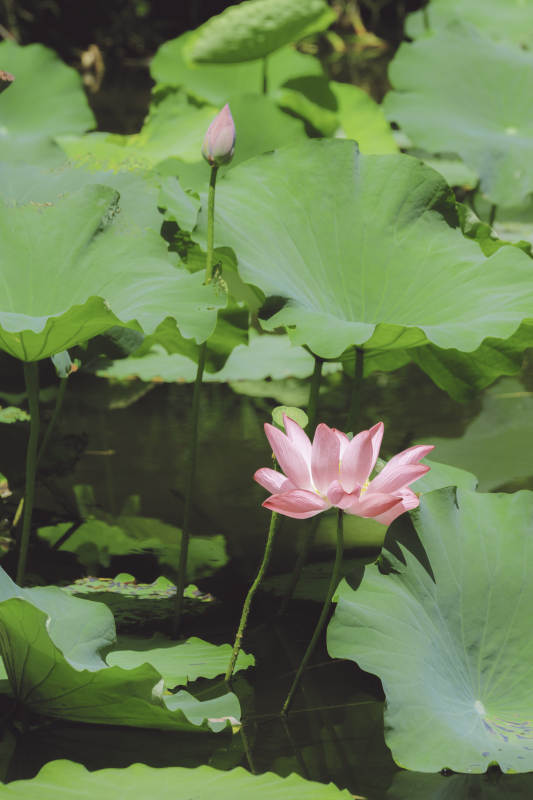 荷塘静谧 粉莲绽放