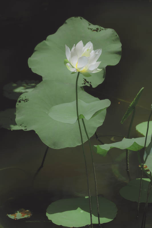 静谧荷塘 白莲绽放