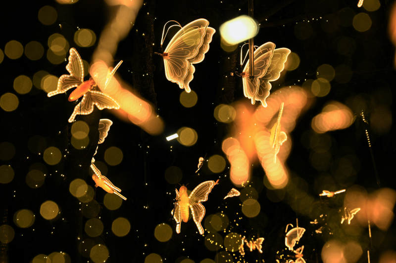 蝶影翩跹夜光中