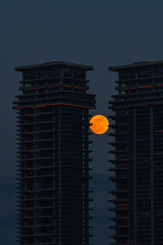 高楼间明月 灯塔映夜空