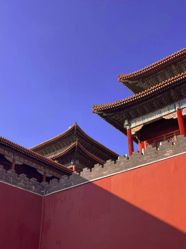 北京故宫红墙蓝天