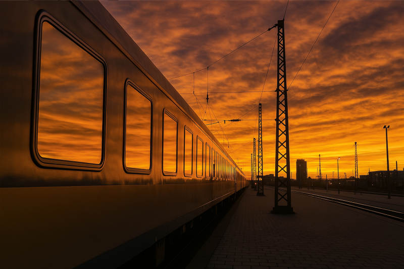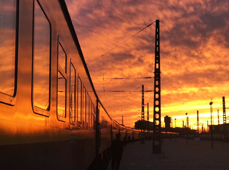 夕阳下的列车剪影