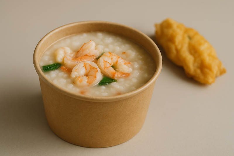 虾仁粥与炸物