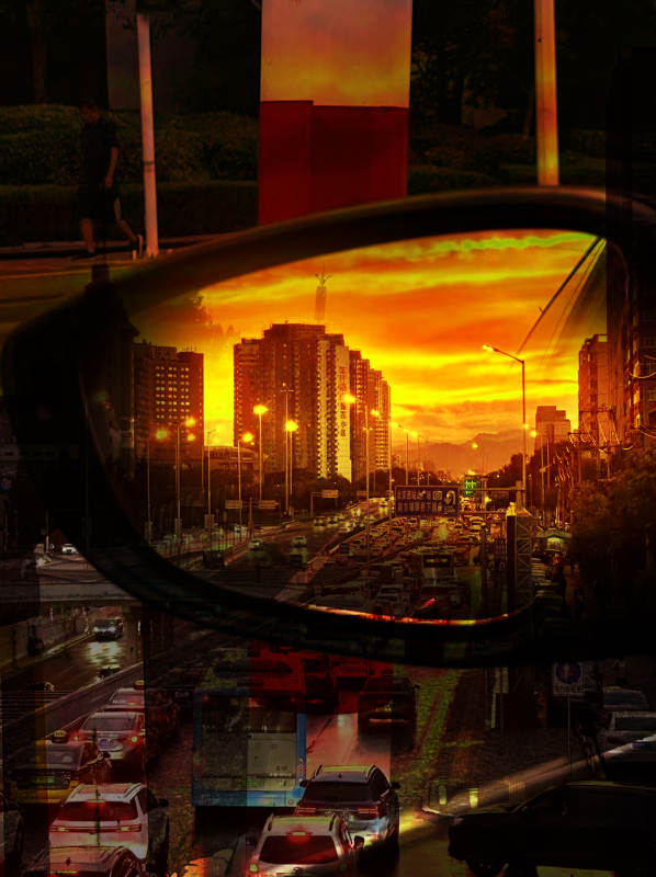 夕阳下的城市倒影
