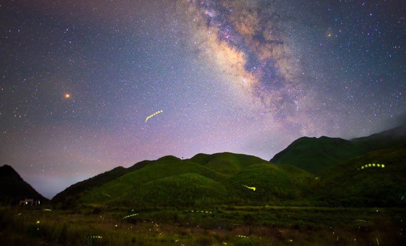 星空下的绿色山脉
