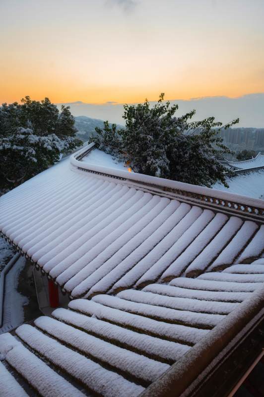 雪后古城的日出