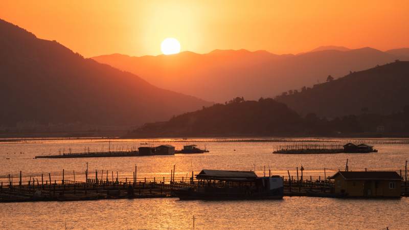 夕阳下的渔港