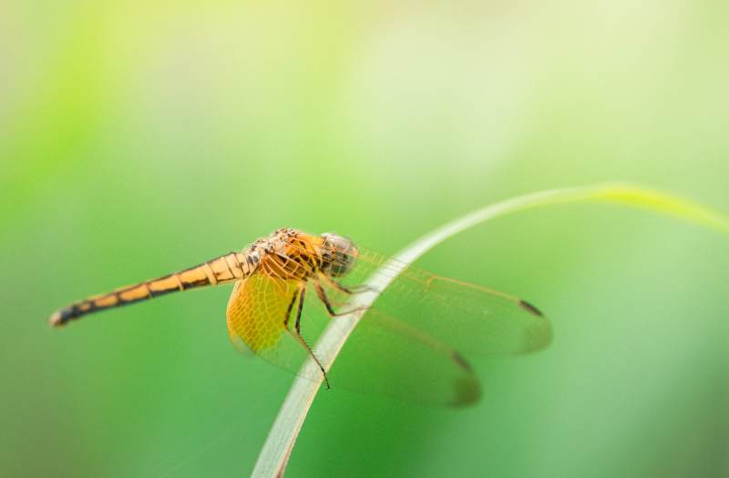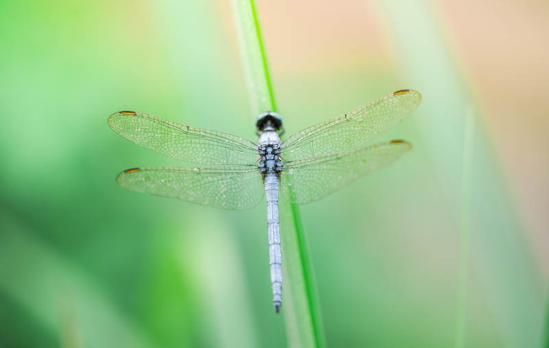 蜻蜓栖息在草叶上