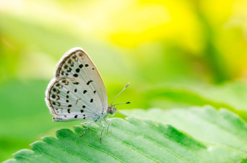 蝴蝶栖息在绿叶上