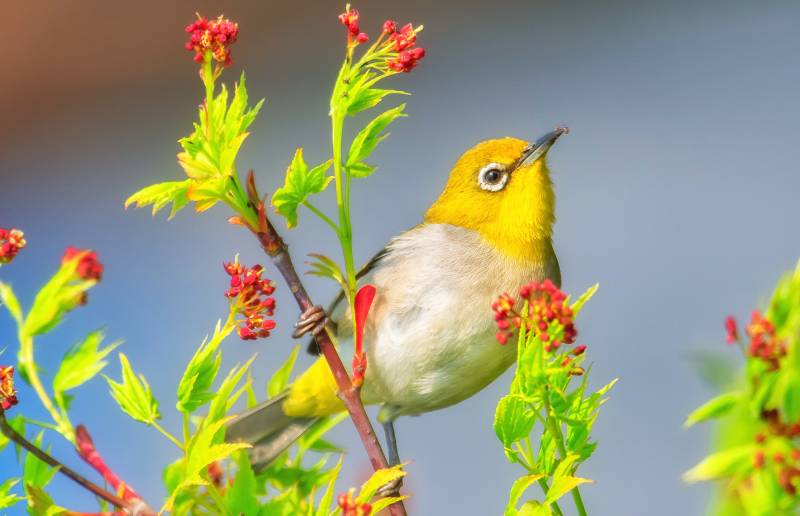 黄莺栖息花间