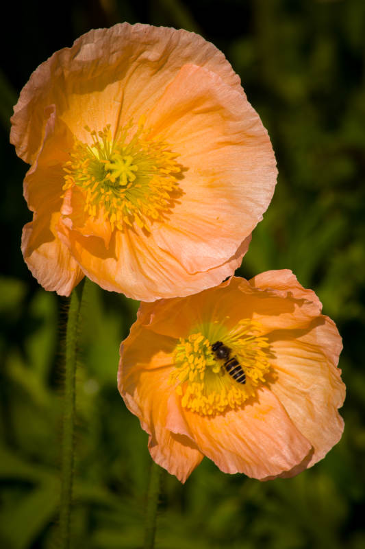 蜜蜂采蜜于橙色花朵