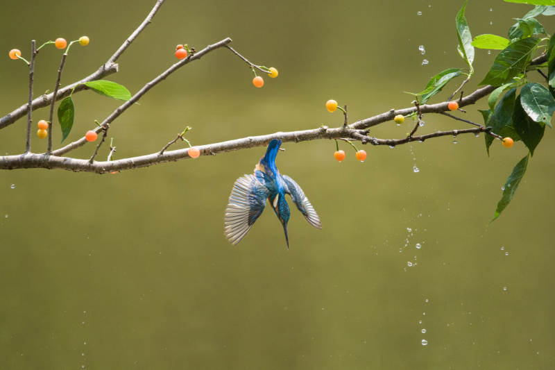 翠鸟倒挂枝头